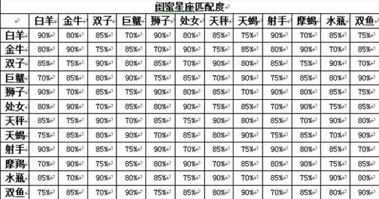 情侣和闺蜜的星座匹配度都是多少?